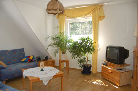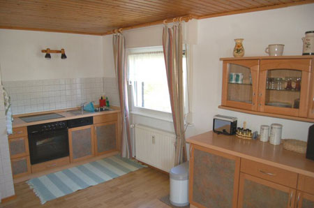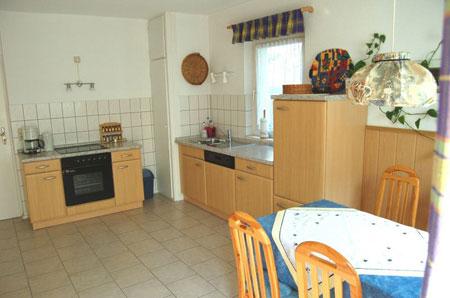 - in der Küche: Kühlschrank mit Gefrierfach, E-Herd (Umluft), Mikrowelle, Kaffeemaschine, Toaster, Warmwassergerät, Geschirrspüler